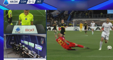 第43分钟,迪马尔科直传,塔雷米禁区外被雷纳放倒,裁判回看VAR确认后者是最后一名防守球员,因此出示直红,科莫剩下10人应战。
