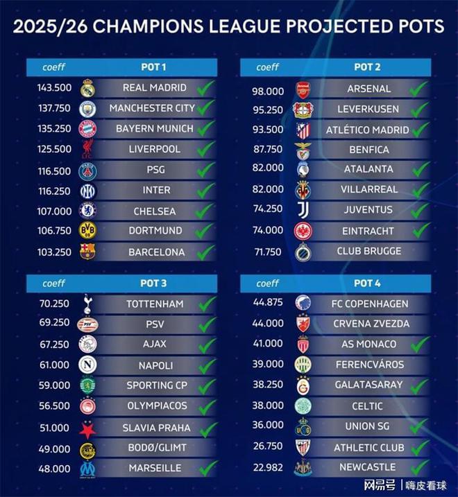 欧洲各大联赛已经落幕,那不勒斯力压国际米兰获得冠军,29支球队已经获得欧冠参赛资格。多家媒体根据规则,计算出下赛季欧冠的分档情况,阿森纳刚好无缘种子队。